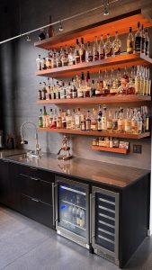 The most important first step is deciding exactly where you want your bar to be within the home. Aside from making sure you’re able to access electricity or plumbing, think about where you’ll want to be able to use your home bar, especially if you plan on entertaining. Some of the most common locations are: