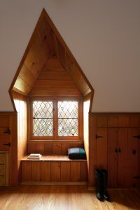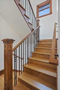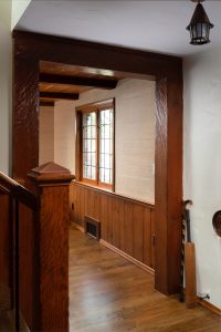 One of the most eccentric sub-genres of the traditional home is the Tudor home. There are several elements that bring out the character of this house. Gorgeous wood details are the backbone of every room, whether it’s in the windows, doors, floors, ceilings, or stairs. This design choice is complemented by stain glass windows and a beautiful pop of green in the kitchen and bathroom. This house is full of cozy cottage vibes!
