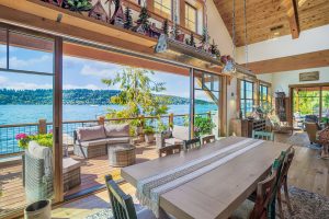 Between the contemporary kitchen and gorgeous waterfront, this Lake Washington lodge might not seem so traditional at first glance. But with its rustic wooden detail layered throughout every room, the nostalgia is there. The traditional elements that are the character of this home can be seen in the bathroom, the family rooms, and even in the exterior details. With the help of H2D Architecture & Design, we were able to bring this rustic home to life!